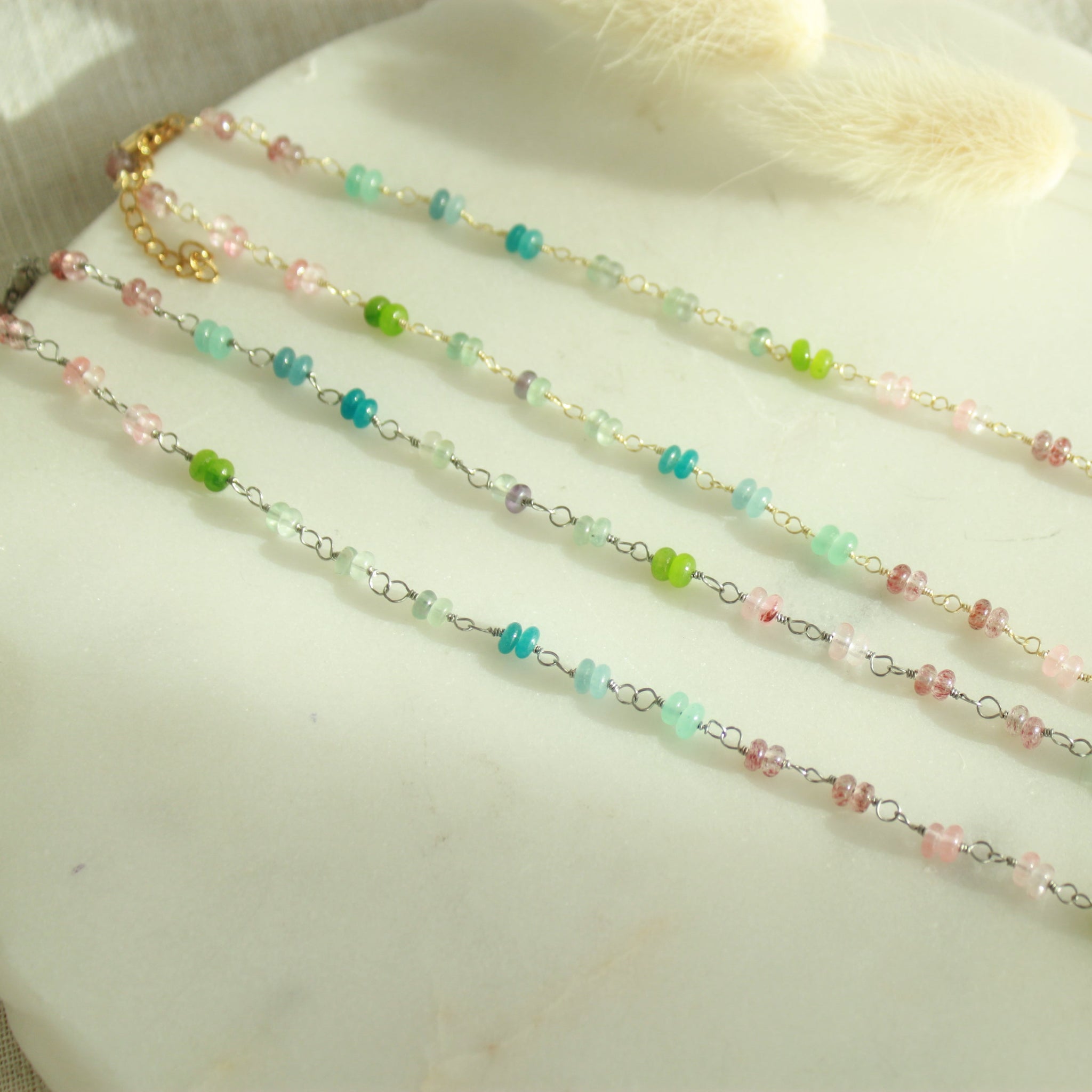 🌈 Vibrant Color Palette: Each stone glimmers with a unique charm, including Strawberry Quartz, Tourmaline, Fluorite, Pink Quartz, and Aquamarine, making this necklace a true statement piece.